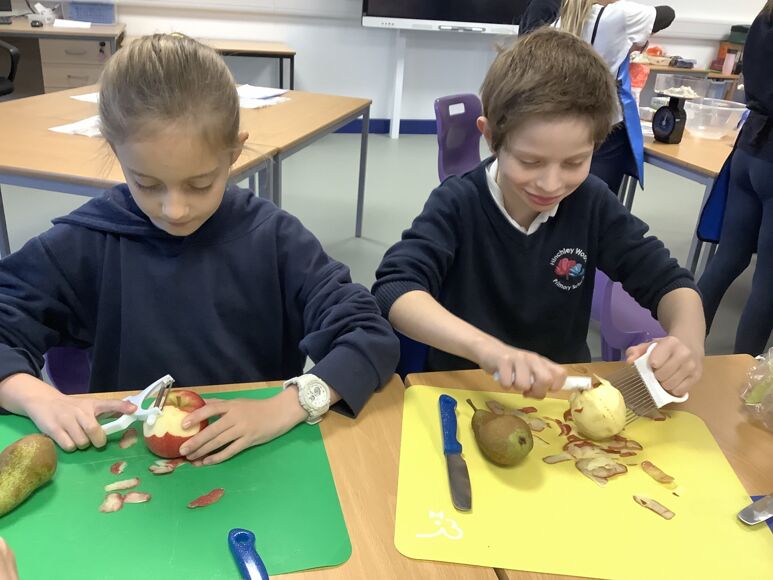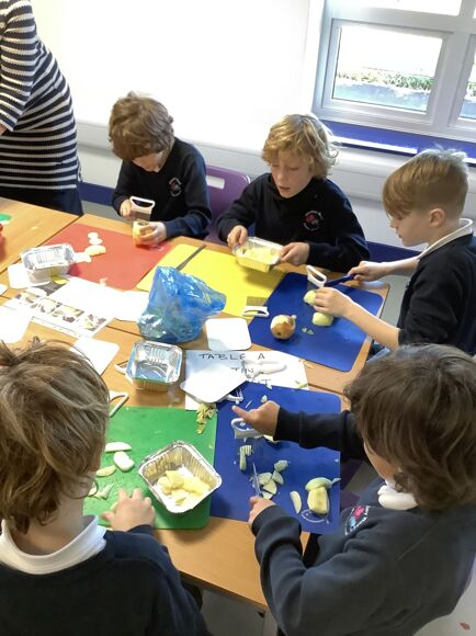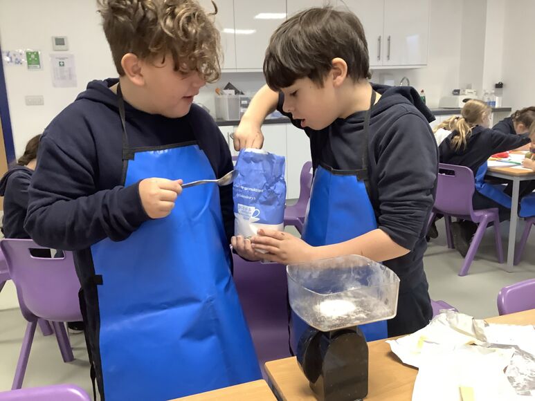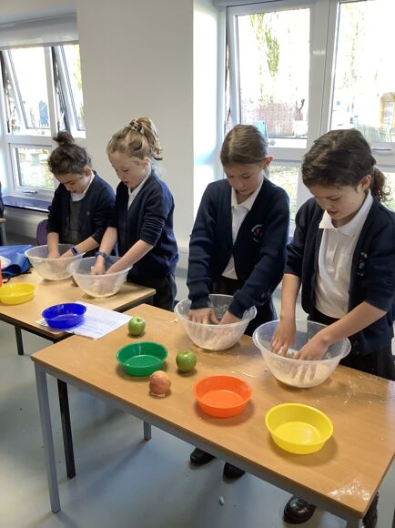 Year 4 had a very successful time making delicious crumbles this week! After doing a taste test of pears, apples and spices, pupils used the fruit they had selected to create their own crumbles. They learnt how to weigh the butter, flour and sugar and mixed it together with their hands which turned out to be very messy! The crumbles were then constructed by placing the mixed ingredients on top of the fruit and finishing off the dish with a sprinkling of spices and oats. The completed desserts were taken home to cook and review – we look forward to hearing just how delicious they turned out to be!
