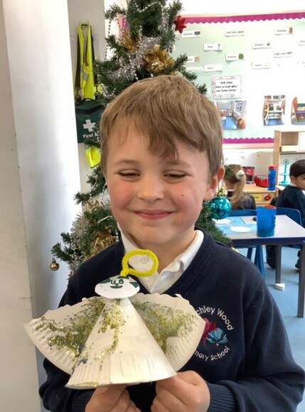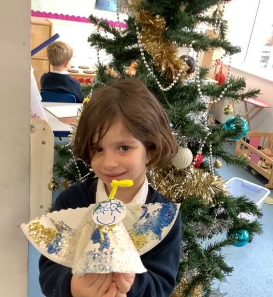 Reception have been busy making Christmas angels. They carefully cut paper plates and decorated them to create their own Christmas tree ornament. Don’t they look lovely!