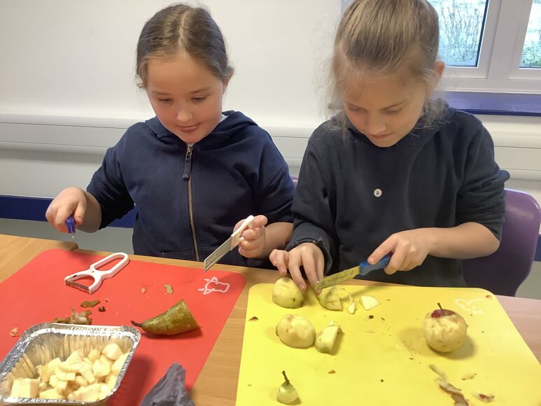 Year 4 had a very successful time making delicious crumbles this week! After doing a taste test of pears, apples and spices, pupils used the fruit they had selected to create their own crumbles. They learnt how to weigh the butter, flour and sugar and mixed it together with their hands which turned out to be very messy! The crumbles were then constructed by placing the mixed ingredients on top of the fruit and finishing off the dish with a sprinkling of spices and oats. The completed desserts were taken home to cook and review – we look forward to hearing just how delicious they turned out to be!